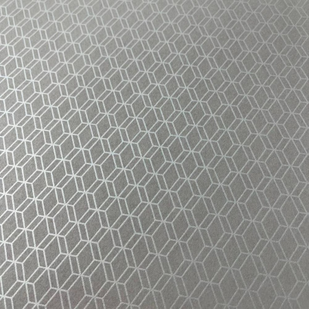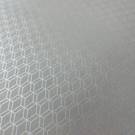 Современный геометрический дизайн с четкими гранями, выполненный с использованием объемных эффектов и движения, обеспечит создание энергичного, креативного и оптимистичного пространства. Динамичность узора сочетается с блеском перламутрового фона, создавая уникальную игру света и тени.